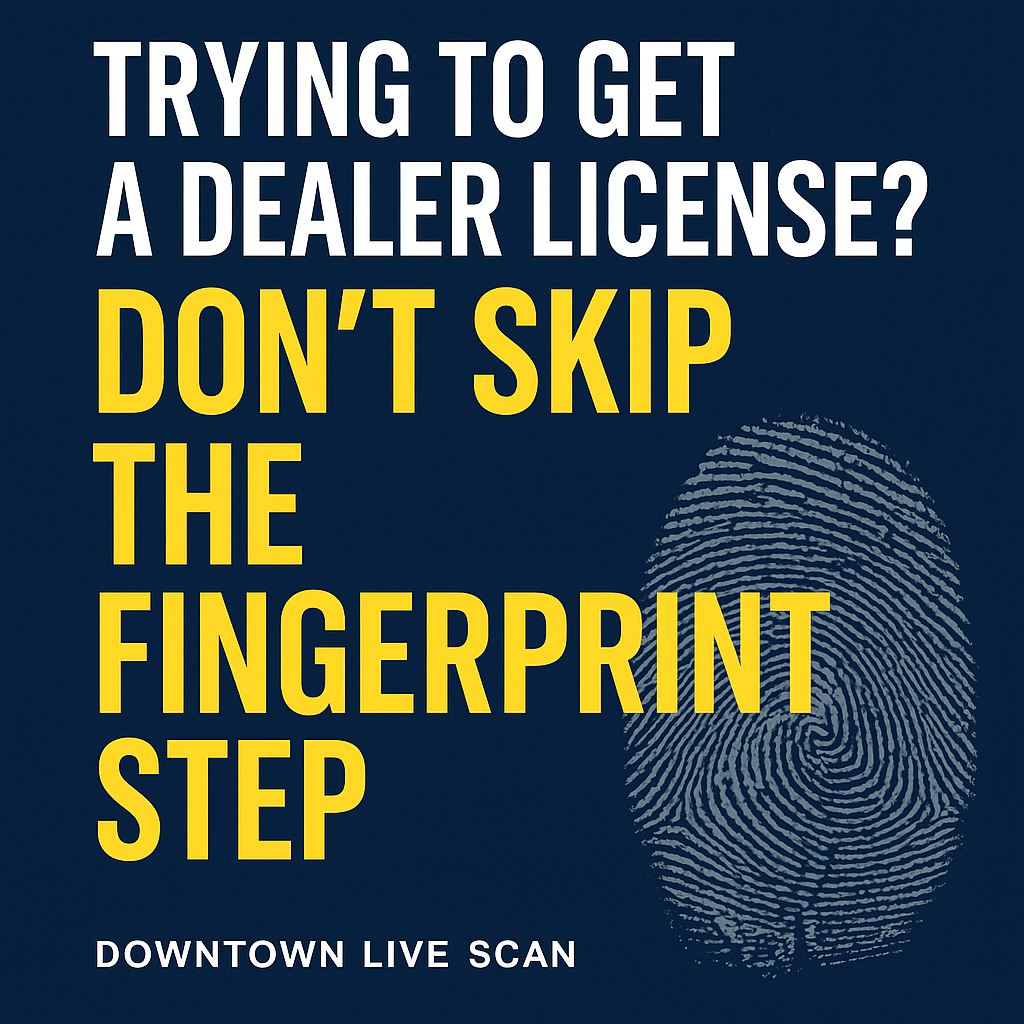 If you’re applying for a California dealer license, don’t get stuck or delayed because you didn’t get your Live Scan...